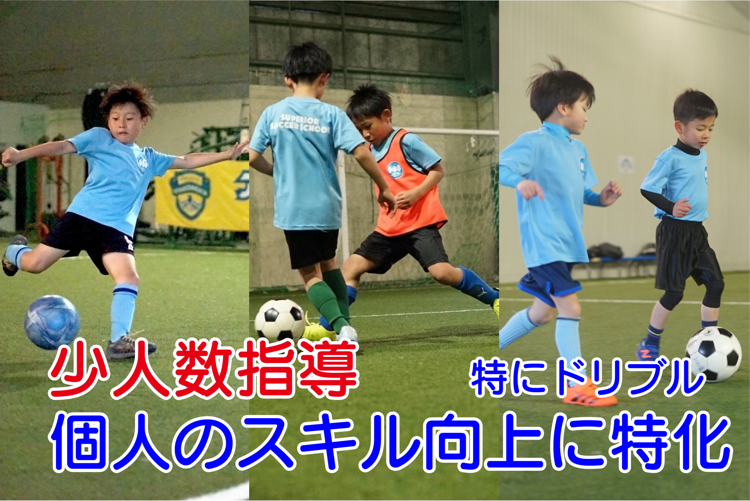 スぺリオルサッカースクールは、個人のスキル向上を目指して創立されたサッカースクールです。ドリブルを中心に、バス、トラップの個人のスキルを上げていきたい選手を主な対象にしています。もちろんサッカーを新しく始めたいという方も大歓迎です。サッカーの技術が向上し、それを実感することによって、サッカーがどんどん楽しくなる。そんなスクールを目指しています。尚、近隣にはいくつかのスポーツ少年団のサッカーチームがあり、チーム練習に加えてスクールで練習をしたいと考える方が沢山おります。そんな状況を考えスペリオルサッカースクールは無駄な部分の費用を出来るだけ抑えて、リーズナブルにスクールに通える環境を準備します。スペリオルサッカースクールは地域のスポーツ少年団チームを応援しています。